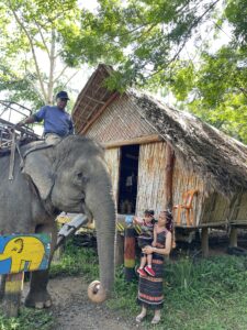 Tại khu du lịch, bạn có điều kiện sử dụng các dịch vụ với voi hơn. Chỉ có một bạn voi duy nhất ở đây, theo chú Trụ nói thì bạn voi này đã làm cùng chú là gần 20 năm rồi, nên tuổi đời của bạn ý cũng là vào hàng “lâu năm” hơn 30 năm có lẻ. Bạn voi này có nét rất tươi và đáng yêu nhưng cũng đã khá già đôi khi nhìn cũng thương lắm. Tùy quan điểm và sở thích của mọi người, nhưng có lẽ dịch vụ bạn nên làm nhất là cho voi ăn hoặc chụp hình cùng bạn ấy thôi do anh quản voi cũng nói với mình thường là tắm voi thì khi đi từ rừng xuống anh và voi cũng đã tắm rồi do tiện gặp chỗ nhiều nước và tắm sớm thì mát mẻ hơn. Bọn mình được ngắm cảnh bạn voi rời đi trở về rừng vào buổi chiều tà và cảnh bạn ấy lội suối cùng anh quản quay lại vào lúc 8h30 sáng, cảm thấy cứ hùng vĩ và thân thương thế nào ấy.