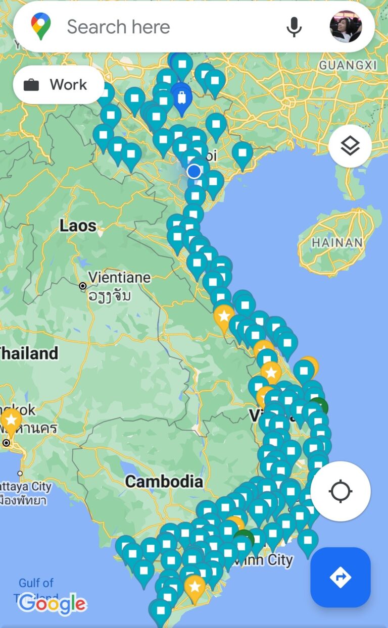 Việc tận dụng tối đa tính năng của google map là cực kỳ nên, đi tới đâu bạn thấy đẹp hoặc thích, có thể lưu nó lại trong hành trình bằng cách tạo một danh mục mới ví dụ mình tạo danh mục “Xuyên Việt” thì mình tới đâu, ăn đâu, nghỉ đâu mình ấn “Save/Lưu” tới đó. Đồng thời khi chọn lưu vị trí sẽ có phần ghi chú/note để bạn có thể ghi rõ điểm này là điểm ăn ngon hay tệ hại, không bao giờ quay lại hay chắc chắn nên đi qua 1 lần…. Vân vân và mây mây.