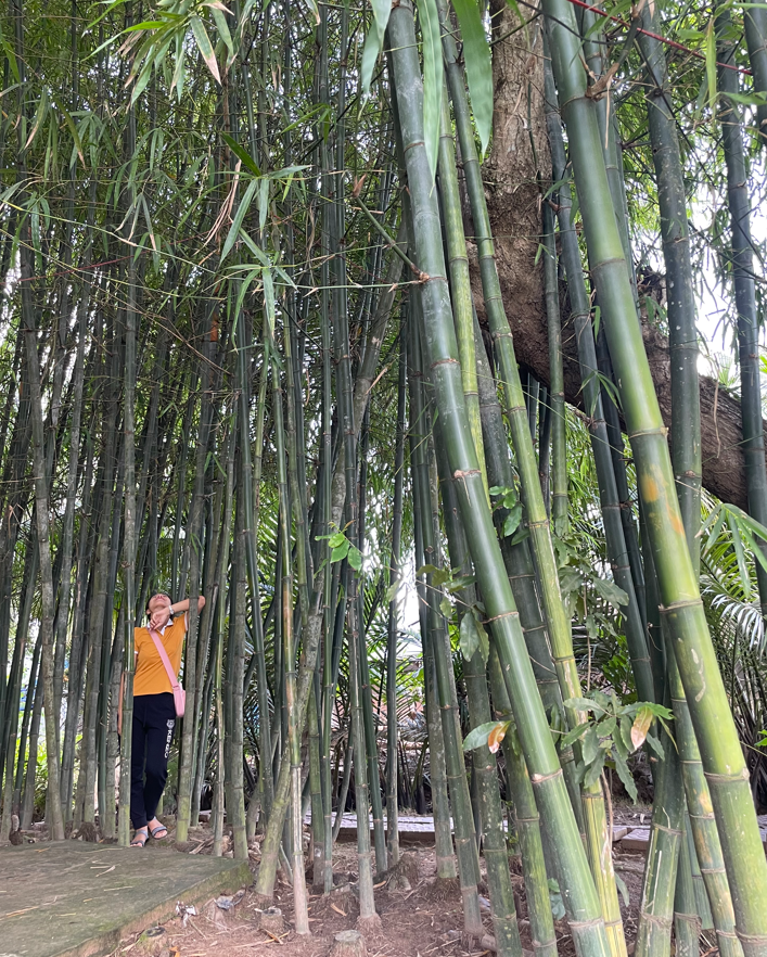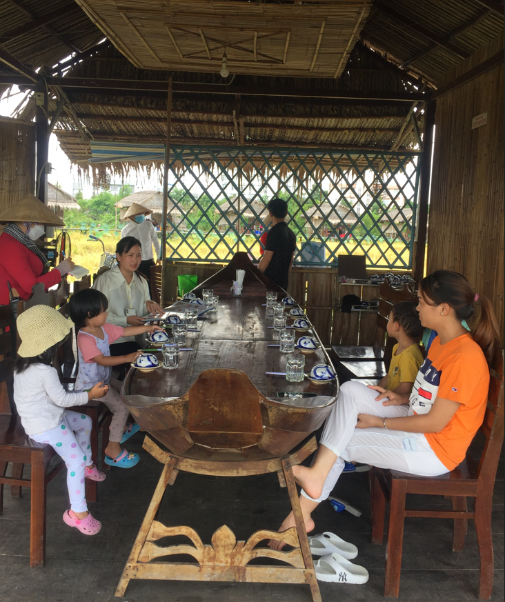 Vẫn là một dạng nhà hàng chòi đáng yêu khác của khu vực sông nước nằm cạnh bờ sông lớn nên nhà hàng cũng vô cùng rộng. Các chòi phân bố xung quanh khu vườn rộng với những hàng dừa cao ngất, xanh và mát. Cứ 2 chòi sẽ có 1 nhà vệ sinh và rửa tay nên bạn không phải chạy xa tít tắp để đi vệ sinh như nhà hàng ở Đồng Tháp. Đồ ăn rất ngon, giá hơi mắc hơn có lẽ vì đây là dạng nhà hàng thương mại hơn. Đặc trưng miền Tây sông nước nên hầu hết là các chị em ở nhà hàng đều thướt tha áo bà ba màu sắc, đội nón. Ở đây bố trí của vườn trong nhà hàng cũng rất đẹp và đáng yêu.