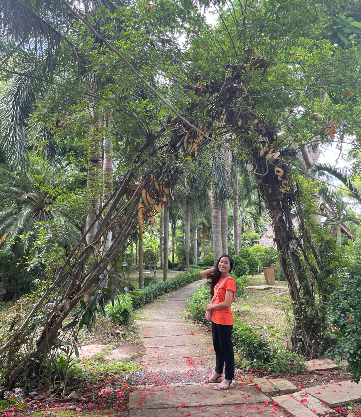 Một quán vô cùng độc đáo nữa ở khu vực sông nước. Ngay khi đi xuôi xuống hết cầu Cổ Chiên đẹp bạt ngàn hai hàng dừa, bạn sẽ cần rẽ vào một ngõ nhỏ rồi lại ngách nhỏ (còn tưởng là ô tô không đi được vì đi sát hết đường luôn, có ô tô đi ra là khóc thét nhé) vào tới quán.