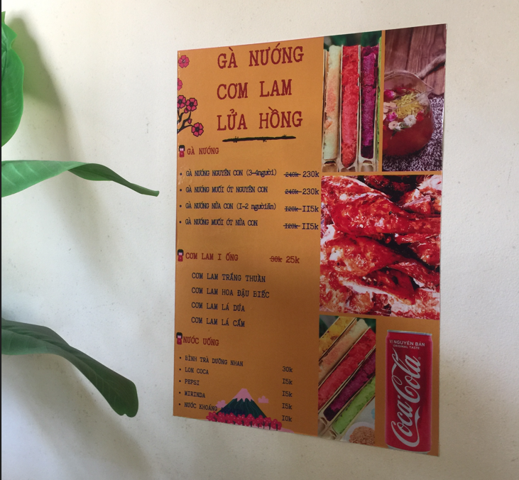 Gà ở đây phải nói, là nướng cực kỳ ngon đúng như cái tên lửa hồng của nó. Gà nướng của quán vô cùng xuất sắc ăn vị rất ngon, da giòn, thịt mềm, ngọt. Cơm lam nhiều màu sắc vị nào cũng ngon và thơm, giòn bên ngoài. Nhà mình gọi đủ các màu luôn, mỗi màu 2 cái (hơi bị nhiều jajaja). Bạn có thể đặt nướng cả con hoặc nửa con nên đừng lo lắng nếu nhiều quá nhé. Thực ra đây cũng là loại gà nhỏ nên không lo không ăn hết đối với 2 người đâu. Quán nhỏ xinh trang trí đơn giản đáng yêu. Các bạn phục vụ đều nhiệt tình và thân thiện. Phục vụ rất nhanh chóng. Tuy nhiên giá gà thì chát hơn nhiều nhé.