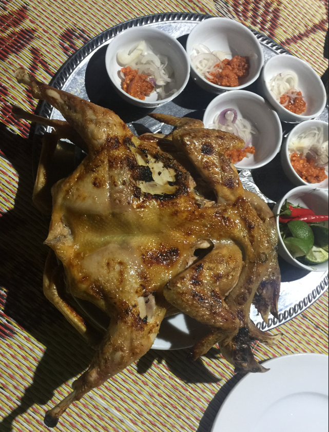 Về món gà ở đây cực kỳ đặc biệt đó là gà được ông chủ quán hợp tác với một nhà nuôi vườn riêng chỉ dùng để cung cấp gà cho ông. Gà nhỏ khoảng cùng lắm 1kg hơn xíu/1 con với giá khoảng 220-240k/kg. Thêm vào đó thì đây là quán bạn cần hoặc nên gọi đặt trước khi đến, bởi lý do quán sẽ đông và có thể sẽ hết gà khi bạn đến. Quan trọng nhất là chủ quán luôn khuyến khích bọn mình là sắp tới thì alo để họ chuẩn bị làm thịt gà luôn thì ướm chừng mình tới nơi nghỉ ngơi khoảng 10 phút là đồ ăn ra vừa đẹp, nóng hổi, không phải chờ lâu. Gia đình chủ quán và cả nhân viên đều rất nhiệt tình, thân thiện khi hướng dẫn nhà mình. Lại thêm một điểm cộng nữa vì thái độ 100% này. Cho nên, trước khi đến hãy gọi trước để xem quán nay còn chòi, còn gà không. Gần đến nơi cách khoảng 15-20 phút thì gọi lại để báo cháu sắp đến rồi cô chú ơi, nướng gà cho cháu nhé.