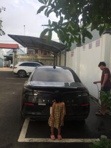 Hai bố con rửa xe luôn tại khách sạn[/caption]Do khách sạn sạch sẽ, và thái độ nhân viên tiếp tân cũng khá hòa nhã, nhẹ nhàng nên nhà mình lại đổi kế hoạch từ ở 1 ngày thành ở luôn 2 ngày (cũng một phần vì mệt không muốn di chuyển tiếp trong ngày hôm sau) vẫn với giá mà mình đã đặt trên booking. Do mình là thành viên Genius hạng 2 nên cũng được giá ưu đãi từ booking từ 320k về 280k. Ở Bảo Lộc, thực sự rất đẹp, sạch sẽ và không khí cũng vô cùng dễ chịu, không khác Đà Lạt là mấy. Có lẽ vì thế mà ở đây các khách sạn cũng hầu như không hề có điều hòa.