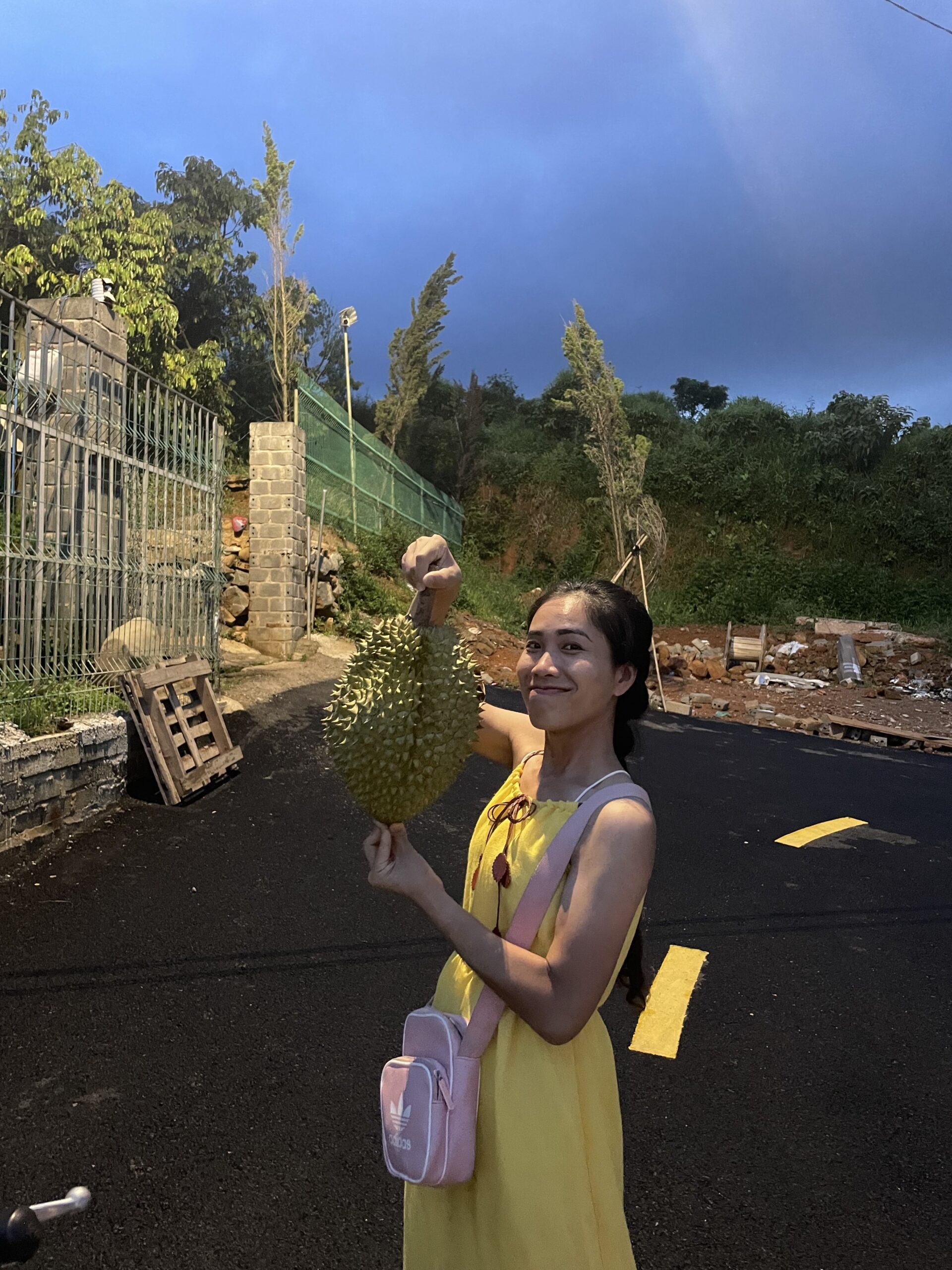 Quả sầu chất lượng[/caption]Về chị chở sầu thì chị tên Thảo và mình cũng có sdt luôn. Vườn sầu 2 mẫu của anh chị thì ở dưới Hà Lâm, Đạ Hoai các bạn có thể thoải mái vào đó chụp ảnh, ăn sầu, thăm quan vườn sầu, muốn ăn quả nào thì bảo chị giúp hái nhé. Vườn của chị là ở chỗ Vựa Trái Cây Tuấn Vi (các bạn search bản đồ cũng ra) chị bảo Tuấn Vi là tên mẹ đỡ đầu của chị. Chị rất thân thiện, chân chất và nhiệt tình, dễ mến. Tụi mình đứng buôn dưa khá lâu. Chị cũng bán ship đi các nơi đó.